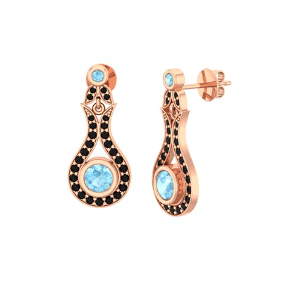 Akuamarin ve siyah zirkon 925 ayar rose altın kaplama gümüş küpe