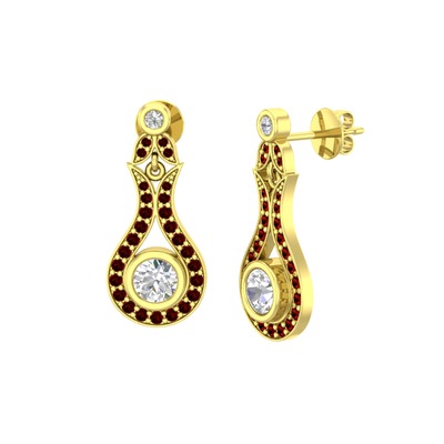 Beyaz zirkon ve garnet 14 ayar altın küpe