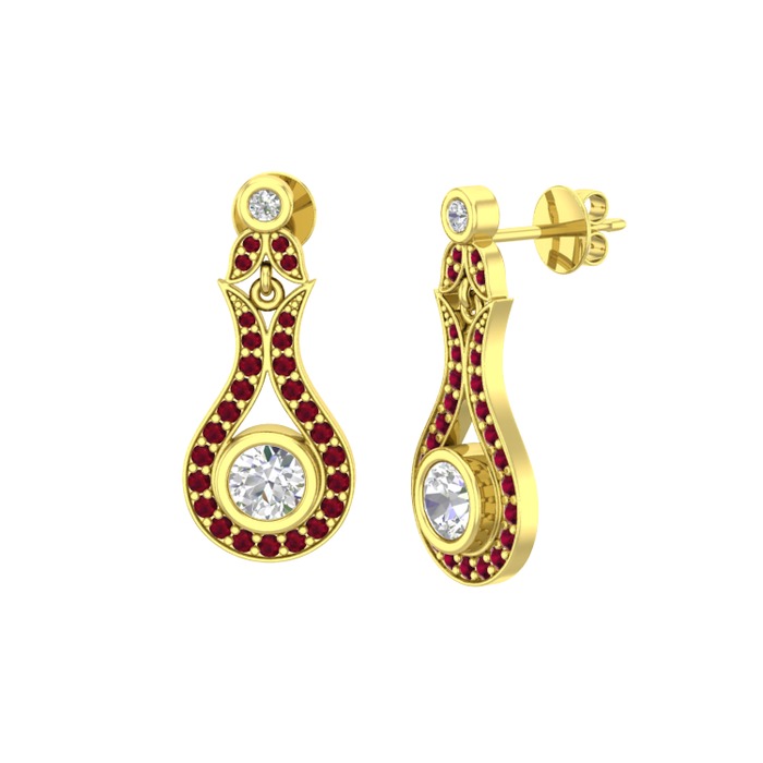 Beyaz zirkon ve kök yakut 8 ayar altın küpe