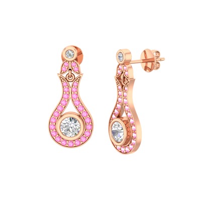 Beyaz zirkon ve pembe kuvars 925 ayar rose altın kaplama gümüş küpe