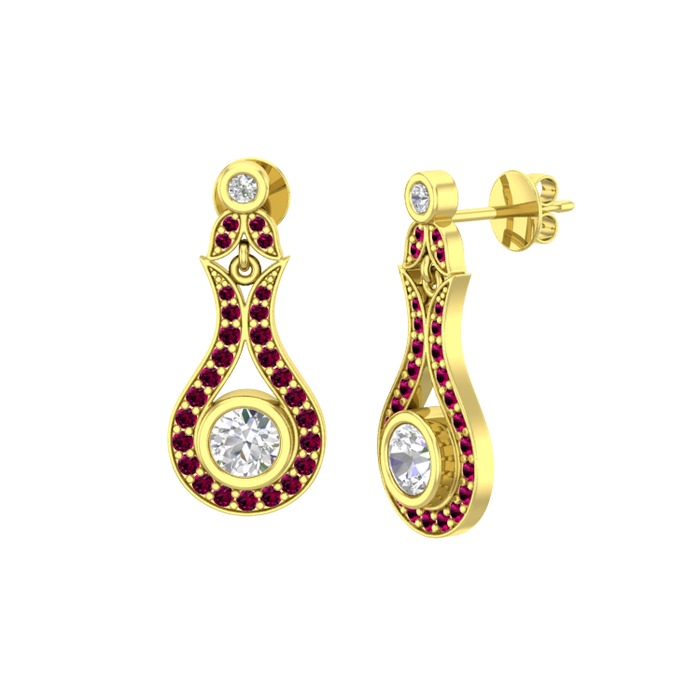 Beyaz zirkon ve rodolit garnet 8 ayar altın küpe