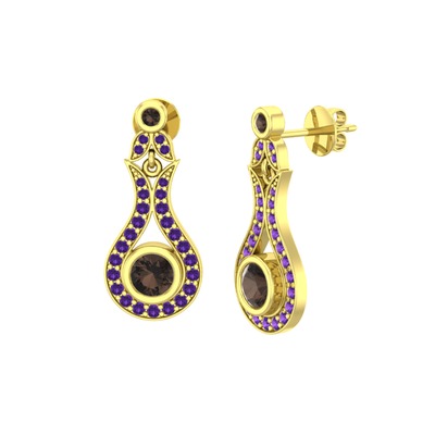 Dumanlı kuvars ve ametist 925 ayar altın kaplama gümüş küpe