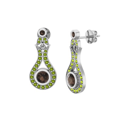 Dumanlı kuvars ve peridot 8 ayar beyaz altın küpe