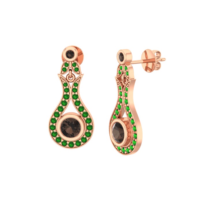 Dumanlı kuvars ve yeşil kuvars 14 ayar rose altın küpe