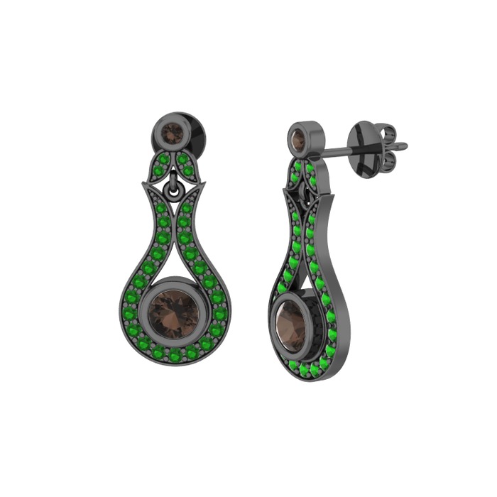Dumanlı kuvars ve yeşil kuvars 925 ayar siyah rodyum kaplama gümüş küpe