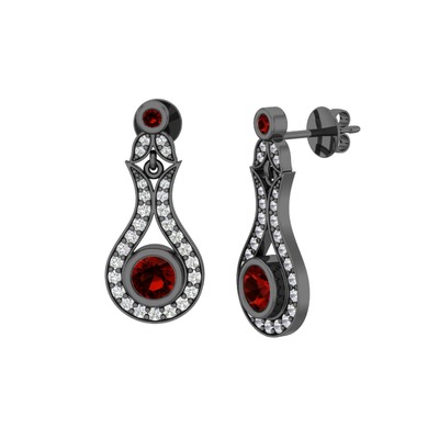 Garnet ve swarovski 925 ayar siyah rodyum kaplama gümüş küpe