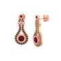 Kök yakut ve dumanlı kuvars 14 ayar rose altın küpe