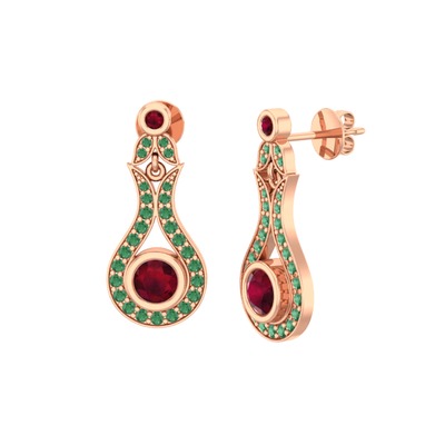 Kök yakut ve kök zümrüt 925 ayar rose altın kaplama gümüş küpe