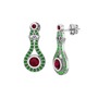 Kök yakut ve yeşil kuvars 14 ayar beyaz altın küpe