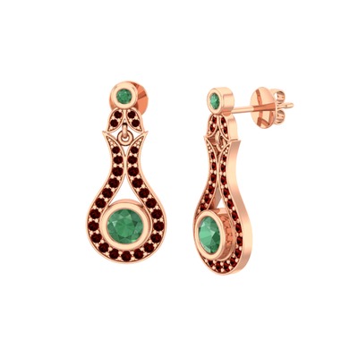 Kök zümrüt ve garnet 18 ayar rose altın küpe