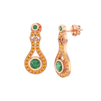 Kök zümrüt ve sitrin 18 ayar rose altın küpe