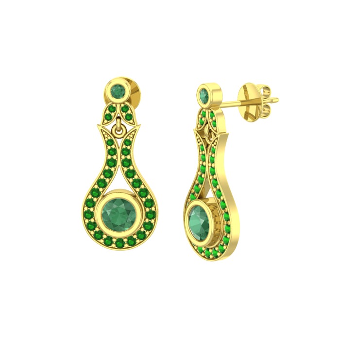 Kök zümrüt ve yeşil kuvars 18 ayar altın küpe