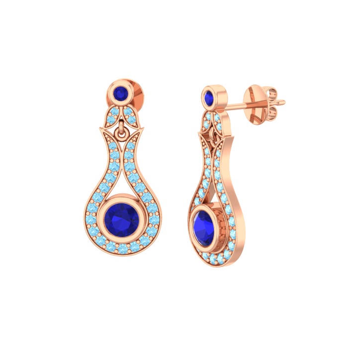 Lab safir ve akuamarin 925 ayar rose altın kaplama gümüş küpe