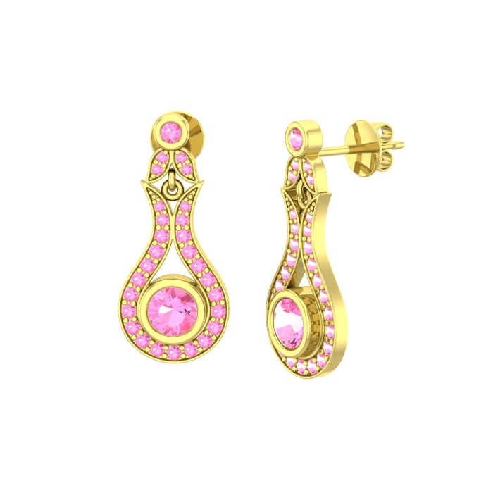 Pembe kuvars 18 ayar altın küpe