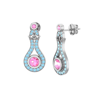 Pembe kuvars ve akuamarin 14 ayar beyaz altın küpe