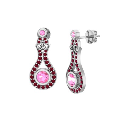 Pembe kuvars ve kök yakut 18 ayar beyaz altın küpe