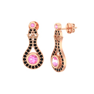 Pembe kuvars ve siyah zirkon 925 ayar rose altın kaplama gümüş küpe