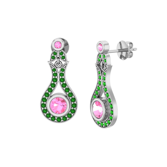 Pembe kuvars ve yeşil kuvars 14 ayar beyaz altın küpe