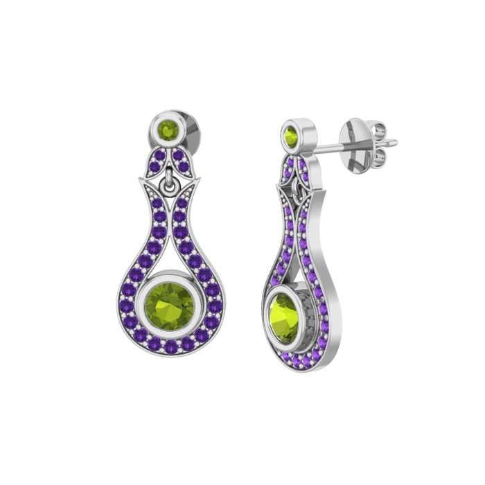 Peridot ve ametist 925 ayar gümüş küpe