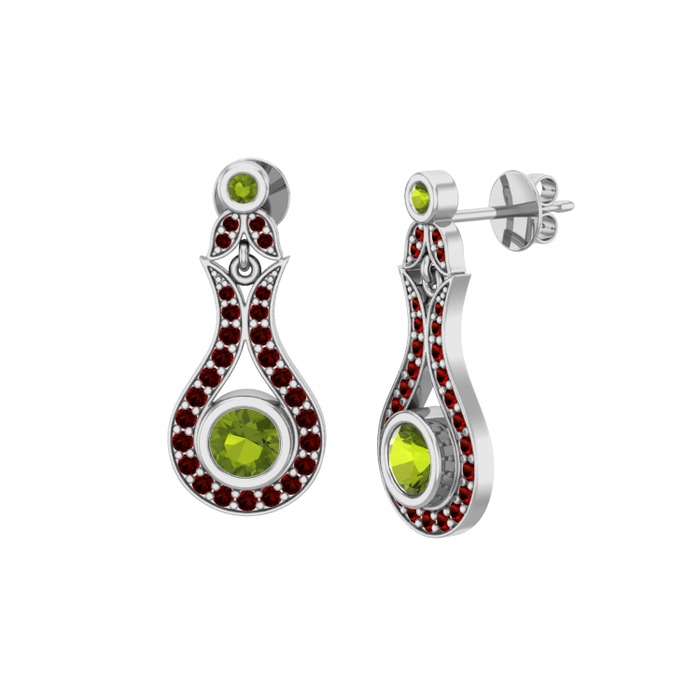 Peridot ve garnet 18 ayar beyaz altın küpe