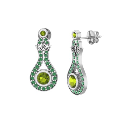 Peridot ve kök zümrüt 8 ayar beyaz altın küpe