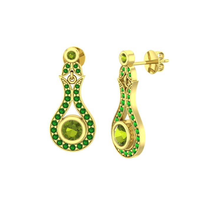 Peridot ve yeşil kuvars 8 ayar altın küpe