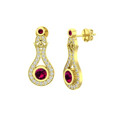 Rodolit garnet ve beyaz zirkon 18 ayar altın küpe