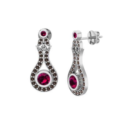 Rodolit garnet ve dumanlı kuvars 18 ayar beyaz altın küpe