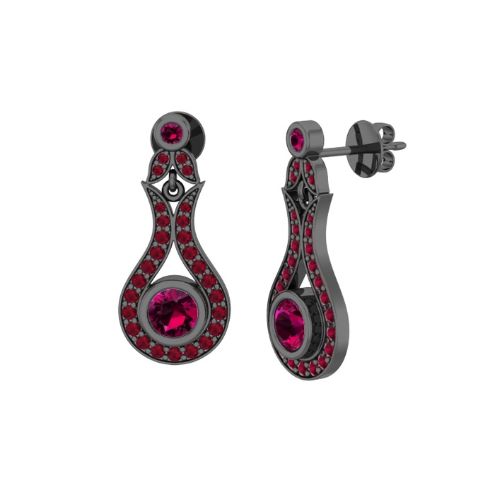 Rodolit garnet ve kök yakut 925 ayar siyah rodyum kaplama gümüş küpe