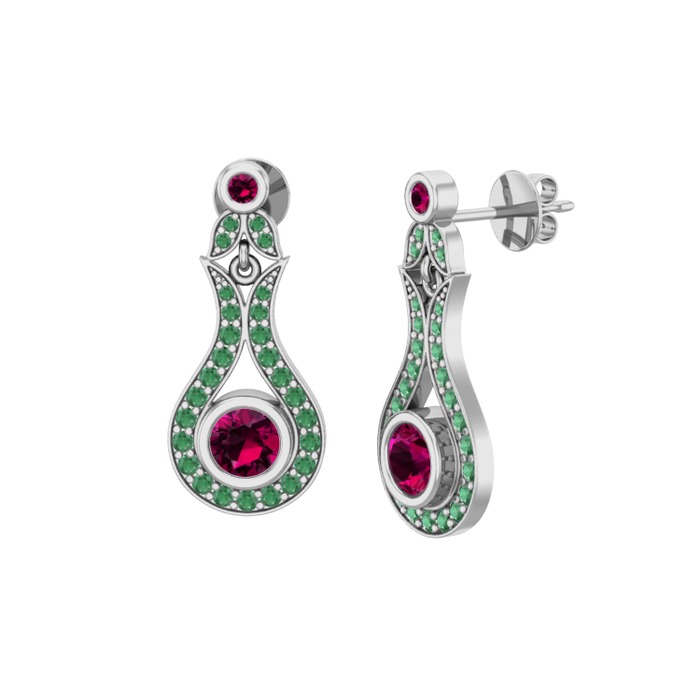 Rodolit garnet ve kök zümrüt 18 ayar beyaz altın küpe