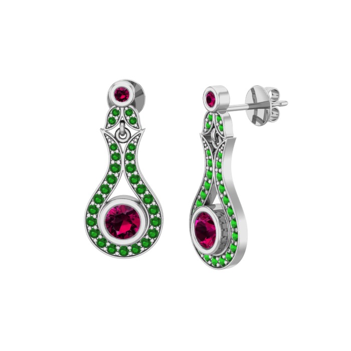 Rodolit garnet ve yeşil kuvars 18 ayar beyaz altın küpe