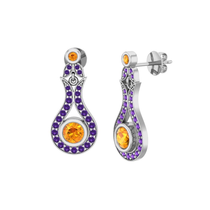 Sitrin ve ametist 14 ayar beyaz altın küpe