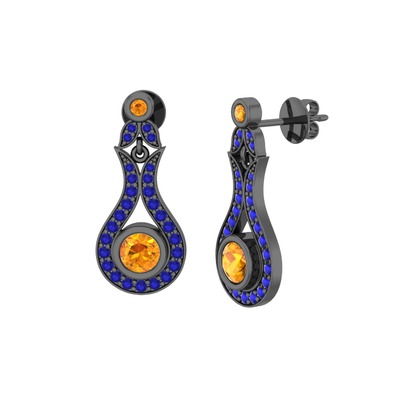 Sitrin ve lab safir 925 ayar siyah rodyum kaplama gümüş küpe