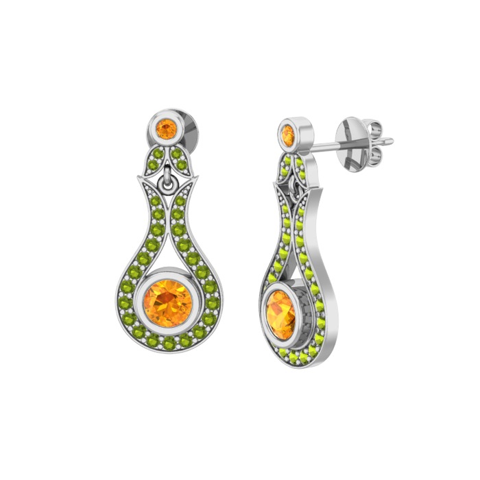 Sitrin ve peridot 8 ayar beyaz altın küpe