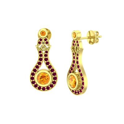 Sitrin ve rodolit garnet 8 ayar altın küpe