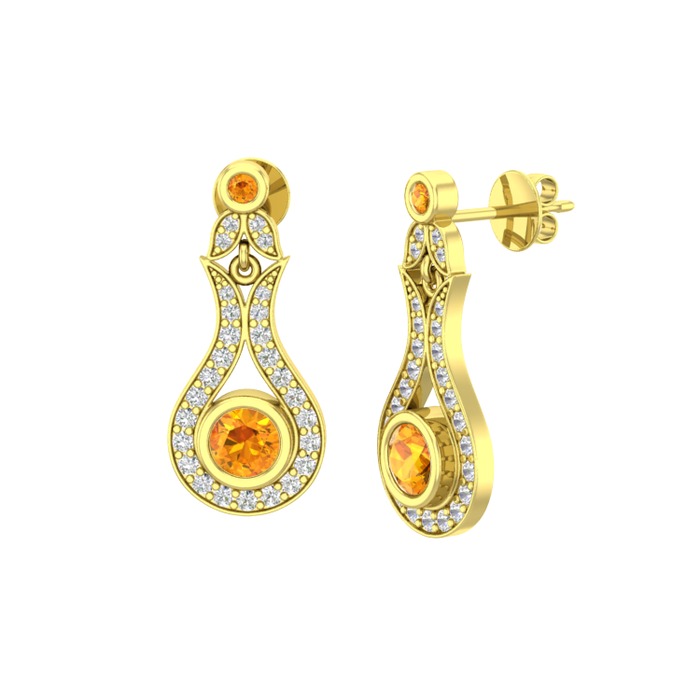 Sitrin ve swarovski 925 ayar altın kaplama gümüş küpe