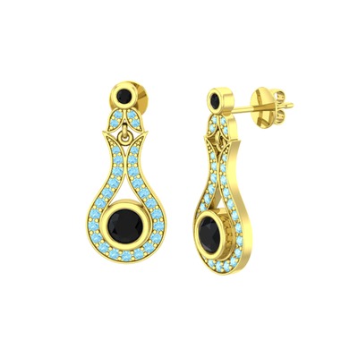 Siyah zirkon ve akuamarin 925 ayar altın kaplama gümüş küpe