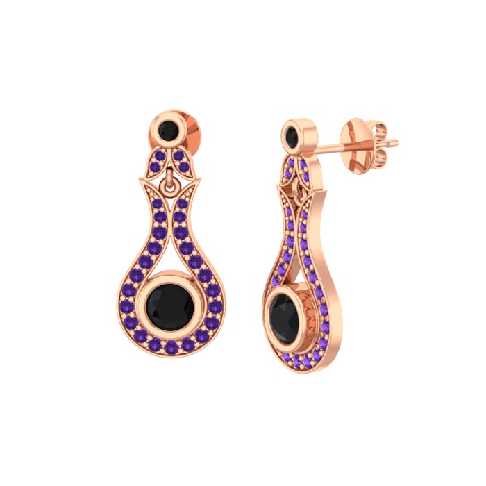 Siyah zirkon ve ametist 18 ayar rose altın küpe