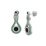Siyah zirkon ve kök zümrüt 14 ayar beyaz altın küpe