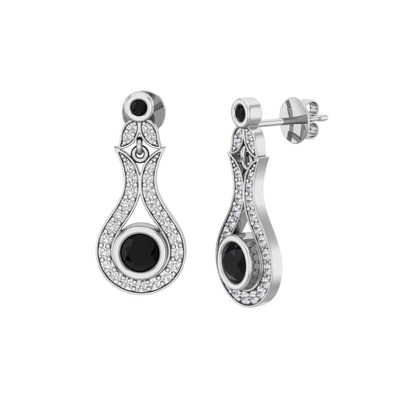 Siyah zirkon ve swarovski 18 ayar beyaz altın küpe