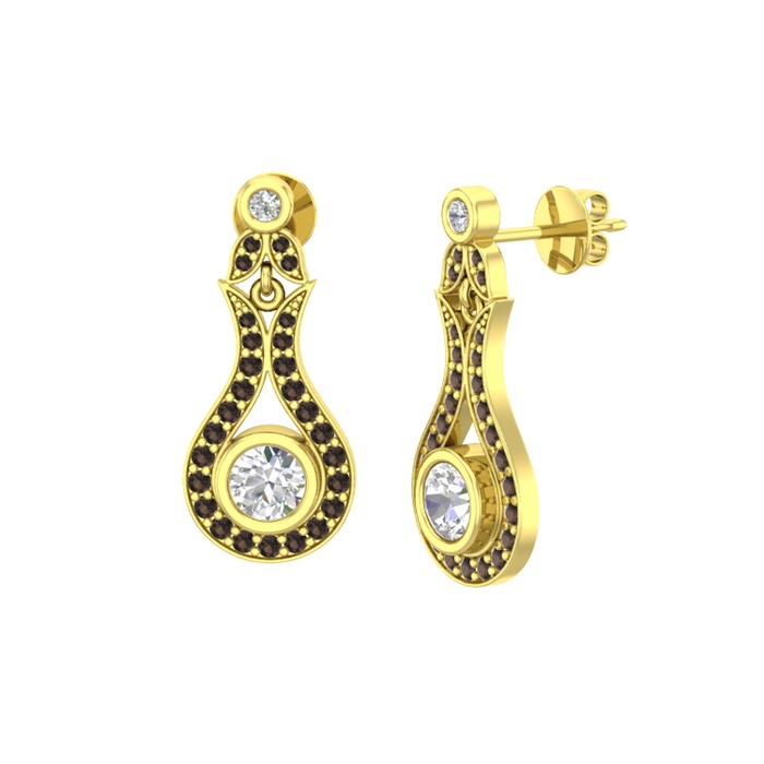 Swarovski ve dumanlı kuvars 18 ayar altın küpe