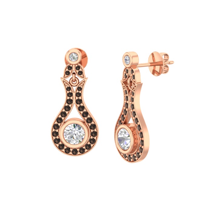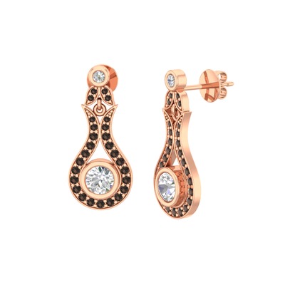 Swarovski ve dumanlı kuvars 18 ayar rose altın küpe
