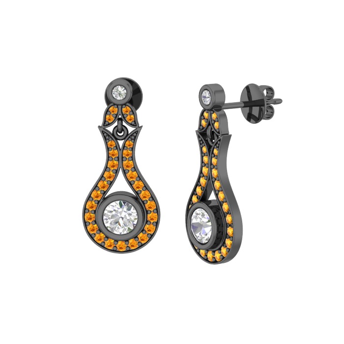 Swarovski ve sitrin 925 ayar siyah rodyum kaplama gümüş küpe