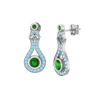 Yeşil kuvars ve akuamarin 14 ayar beyaz altın küpe