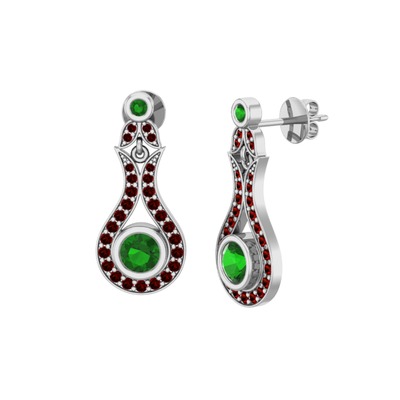 Yeşil kuvars ve garnet 14 ayar beyaz altın küpe