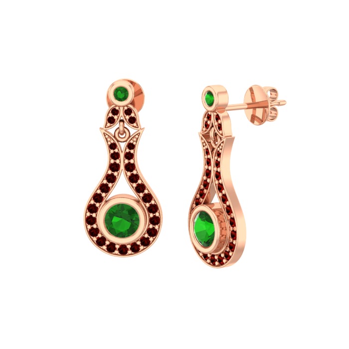 Yeşil kuvars ve garnet 14 ayar rose altın küpe