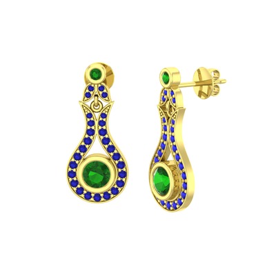 Yeşil kuvars ve lab safir 925 ayar altın kaplama gümüş küpe