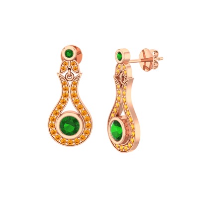Yeşil kuvars ve sitrin 8 ayar rose altın küpe