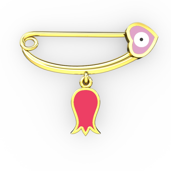 8 ayar altın nazar iğnesi (Pastel pembe mineli)