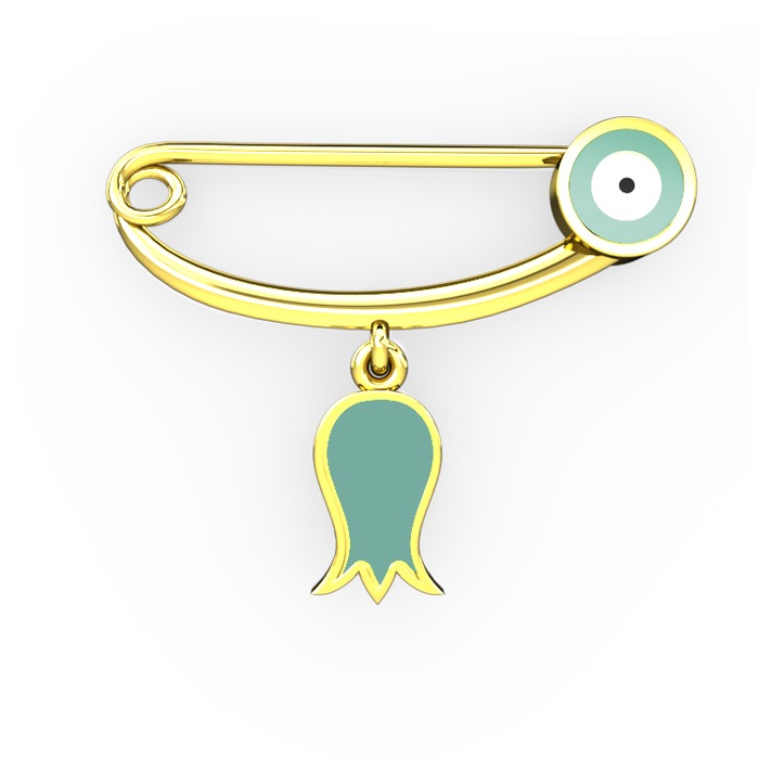 18 ayar altın nazar iğnesi (Pastel mavi mineli)